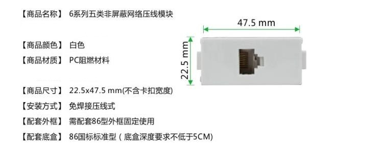 浮太高品质塑料RJ45卡线式网络模块 网络面板 5类网络插座 模块