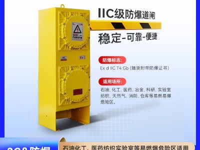 EGDZ-系列智能防爆道闸,适用于II类A级、B级或C级,温度组别为T1 ~T4,含有爆炸性气体环境危险场所的0区、1区、2区;以及含有爆炸性粉尘与空气混合物的20区、21区或22区所有危险区场所(订货须注明)。