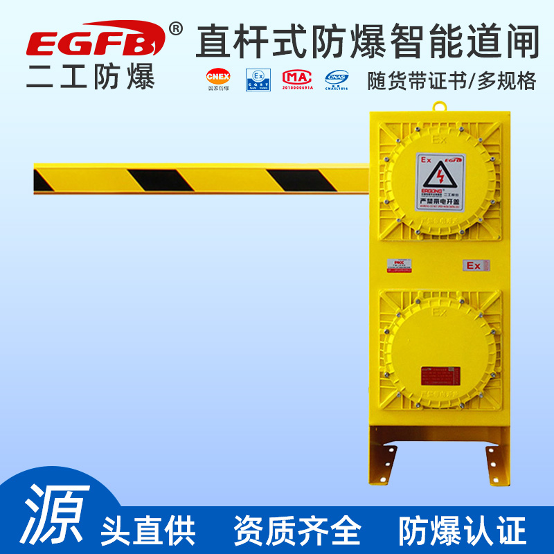 EGDZ-系列智能防爆道闸,适用于II类A级、B级或C级,温度组别为T1 ~T4,含有爆炸性气体环境危险场所的0区、1区、2区;以及含有爆炸性粉尘与空气混合物的20区、21区或22区所有危险区场所(订货须注明)。