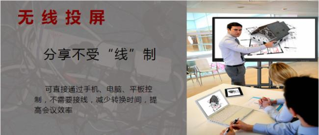 只需轻轻一点,即可在会议机和移动设备之间实现内容分享,可将PPT、Word、Excel和PDF等任意类型的文件直接投放在大屏幕上,轻松遥控