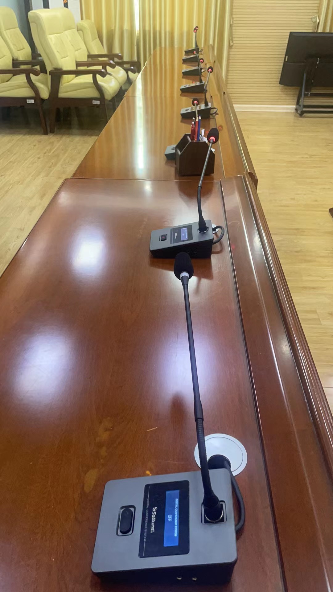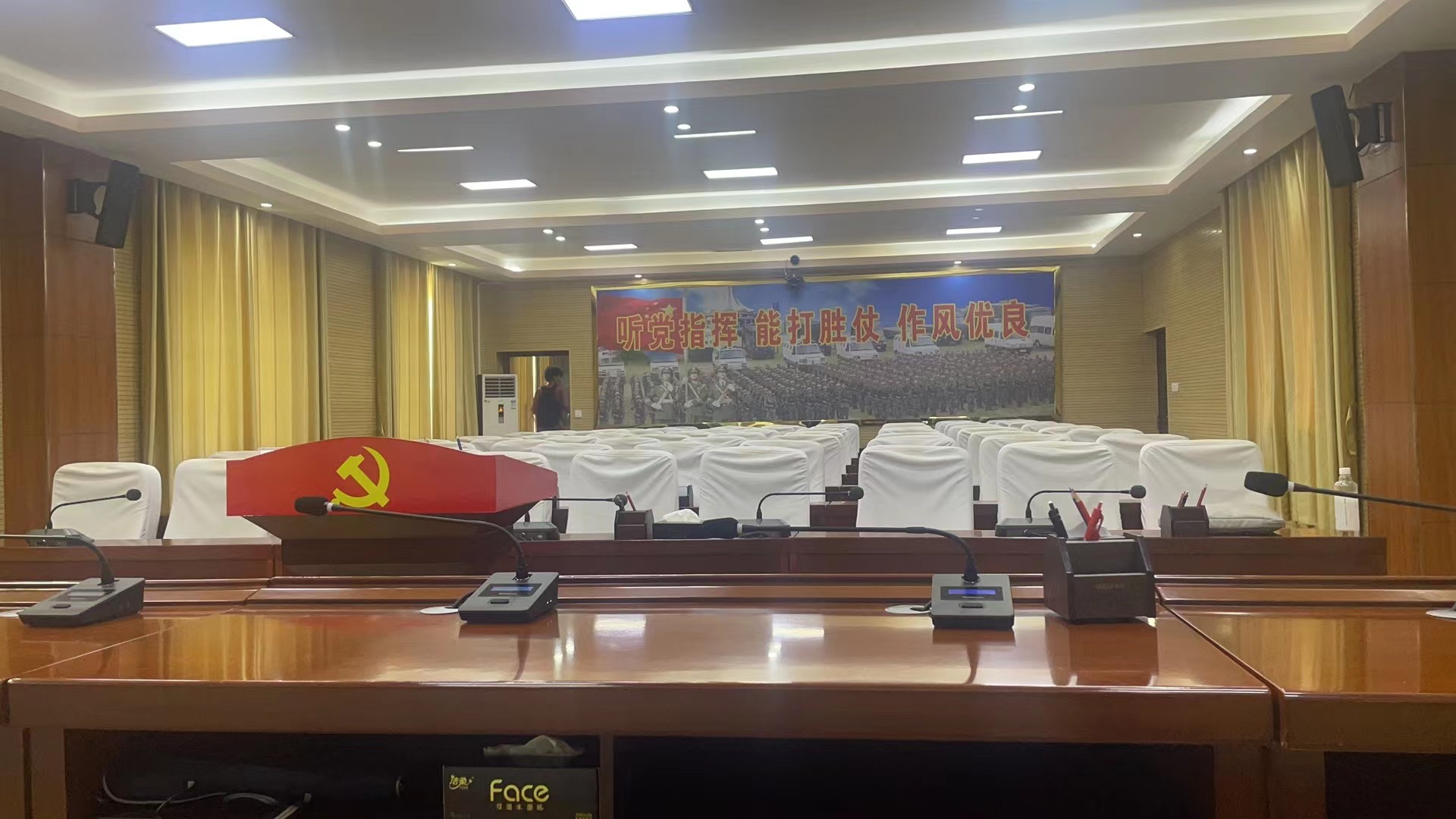 案例:广西某部会议室数字手拉手会议系统及音响设备 深妙代理 广西某部队会议室数字手拉手会议系统及音响设备,采用浩田品牌专业音频设备。通过现场勘察及旧设备使用情况,设计了一套全新的音频系统方案。 针对原音响设备容易产生电流声,视频会议通联时声音不够清晰等情形,建议采用浩田数字发言系统,大大提高声音采集质量及拾音距离。 就旧音响扩声系统的声音浑浊,低沉等问题,建议业主采购全新的浩田数字音频设备。新设备达到声音清晰,无混响,长时间运行会议也能达到系统自动激励,去除杂音。