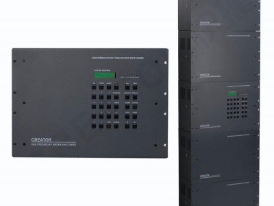 RGB12832/64/128是一款大型的矩阵切换器,其中采用**分箱结构设计,操作简单,性能更加稳定。支持128路视频信号输入,128路视频信号输出的视频矩阵切换器。可将输入128路RGB信号信号同步或异步快速切换任一路或多路通道输出。产品特性: 前面板采用合页转动式,门锁采用精密工艺设计,给现场维护带来极大的方便。