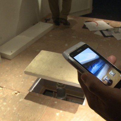 一种竹节式电动吊架,包括机座、机箱、吊臂,所述机座内设有一对齿轮付,所述机座端面设有与齿轮付中主传动齿轮相驱接的电机,所述吊臂垂直装置于电机一侧的机座上,所述吊臂一侧装有行程开关,其特点是所述吊臂与机座齿轮付中被动齿轮之间设有当启动电机可使吊臂伸出或收回的联动机构,当电机启动时通过齿轮付将动力传递给首级伸缩臂,再由首级伸缩臂中的螺杆带动次级伸缩臂,并通过各伸缩臂相互间的键导向实现了吊臂整体的长度的伸延,由于该伸缩臂所用结构在理论上可实现多节传动,故可根据不同需求生产各种规格的吊架,从而满足了市场需求。