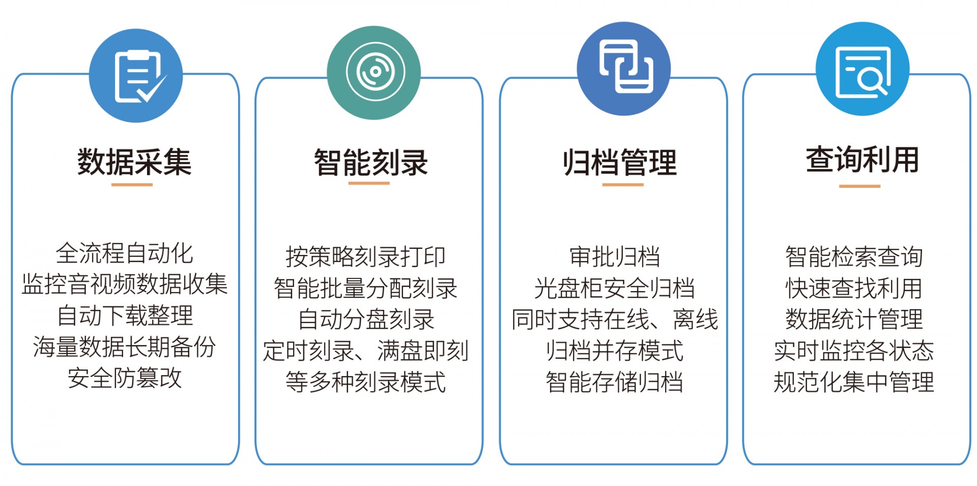 广泛应用在检察院、纪委、法院、公安执法记录仪、采购中心开评标音视频、银行双录音视频、公证处音视频、教育考试音视频等行业海量音视频数据快速智能化刻录备份归档。