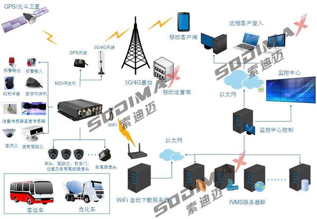 云服务器:索迪迈视频车辆监控平台,支持级联到上级平台。