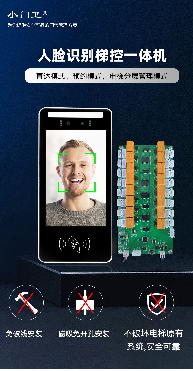 人脸识别梯控系统厂家直销免破线安装电梯分层直达管理终端机