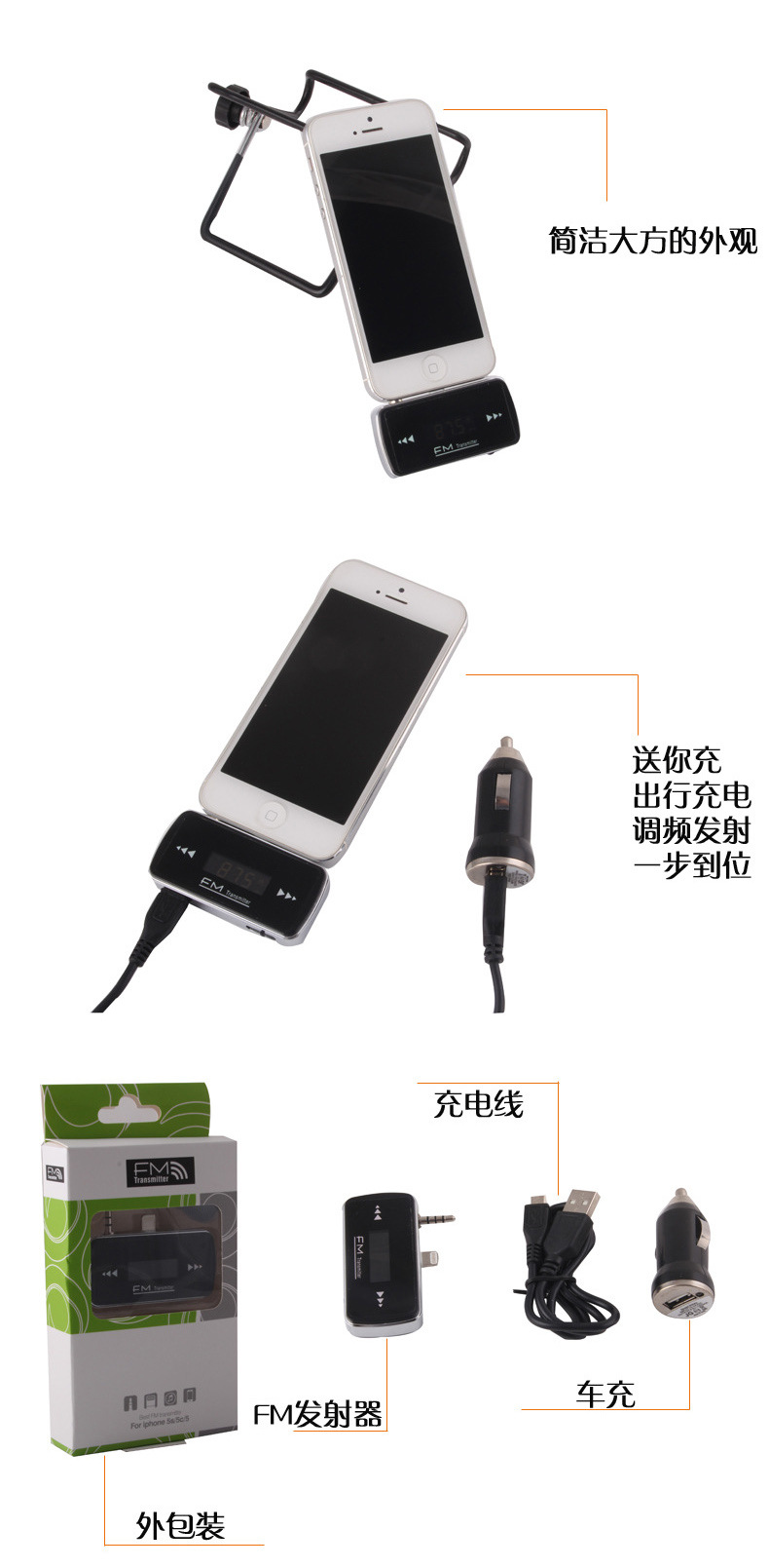 iPhone MP3发射器转换器 FM发射器/5S车载发射器/FM调频发射器: