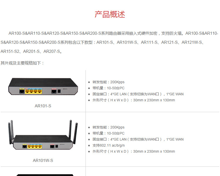 AR100-S&AR110-S&AR120-S&AR150-S &AR200-S商业SOHO&SMB系列企业路由器作为AR G3的固定接口路由器,是面向企业分支及中小型企业量身打造的融合路由、交换、安全、无线的一体化企业网关。