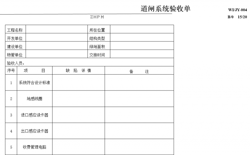 道闸系统验收单