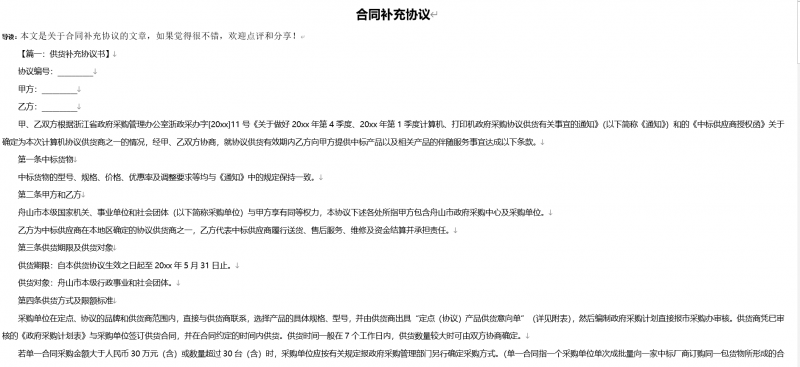 合同补充协议部分截图:
