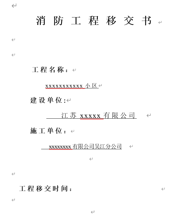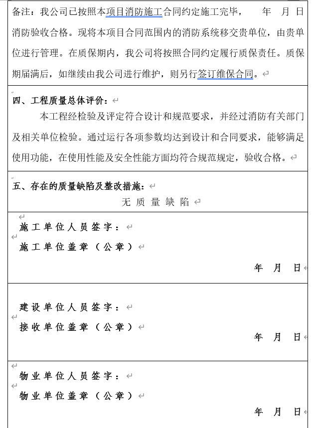 消防工程移交书