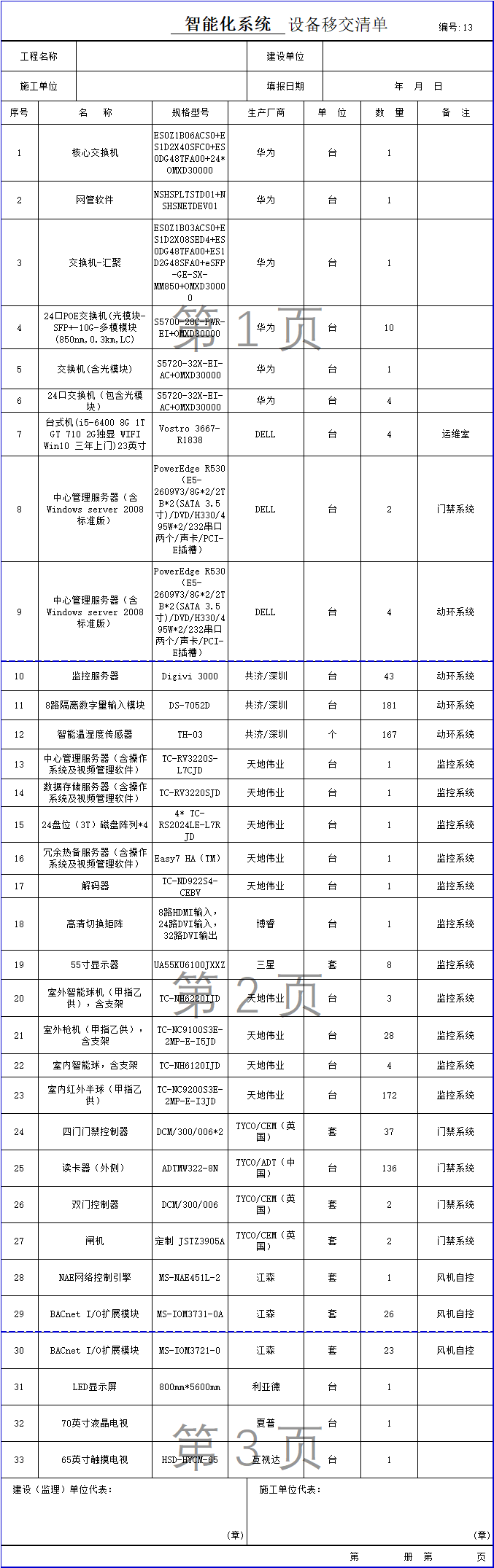 智能化网络设备移交清单,供大家参考。