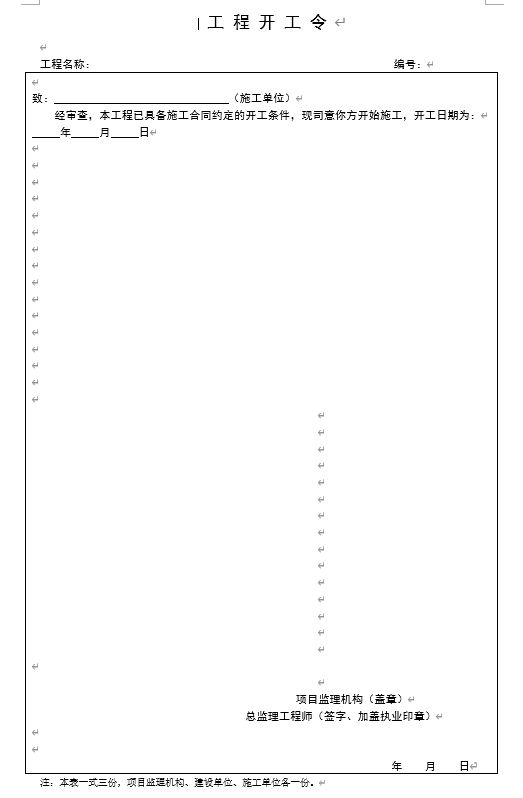 工程开工令