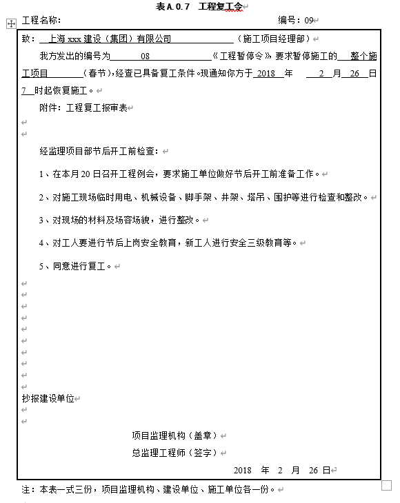 工程复工令