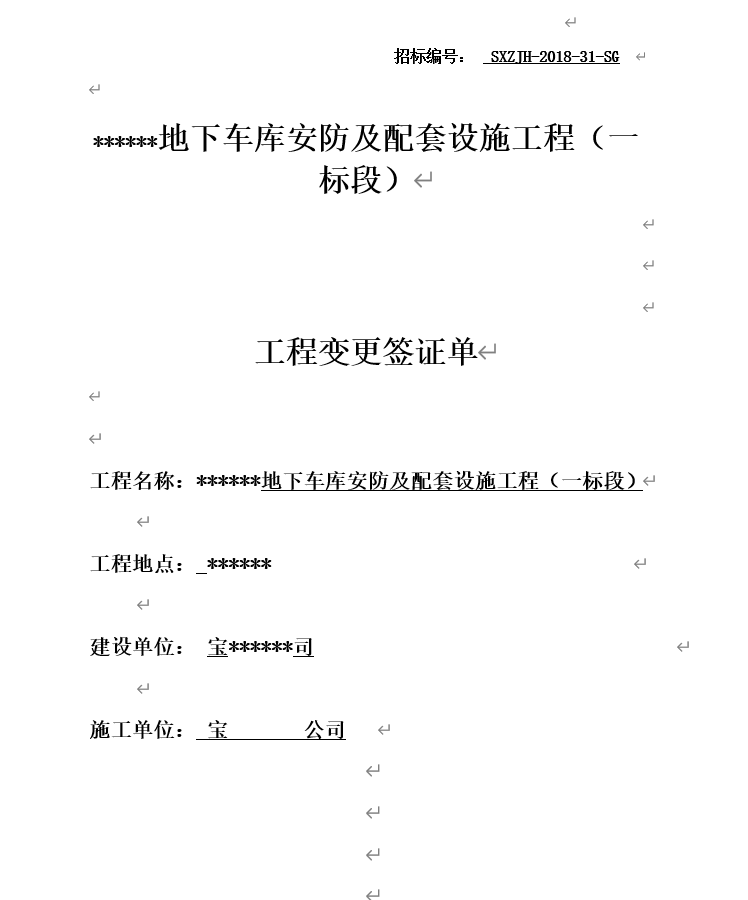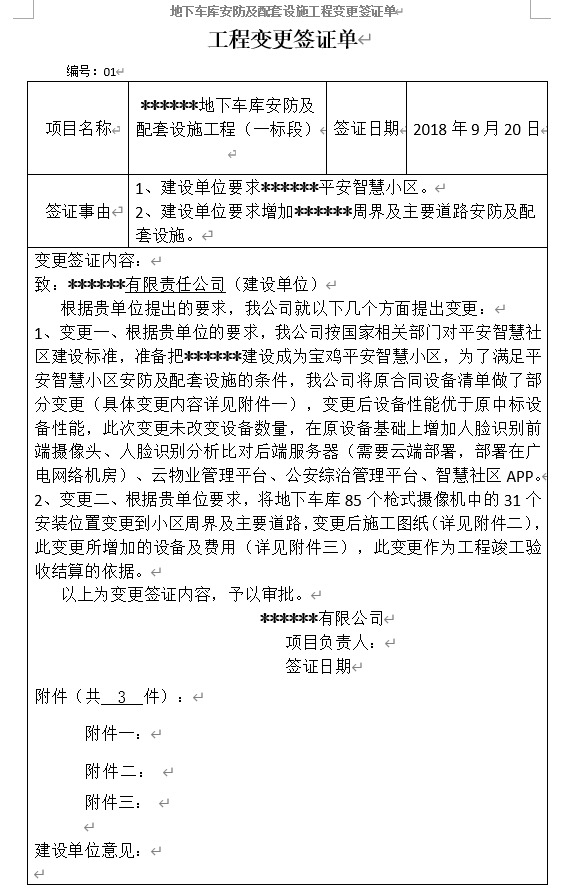 工程量变更签证单