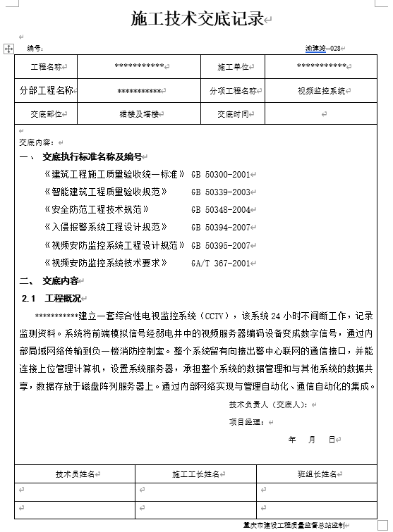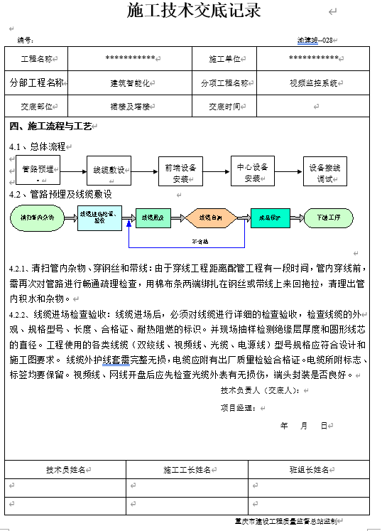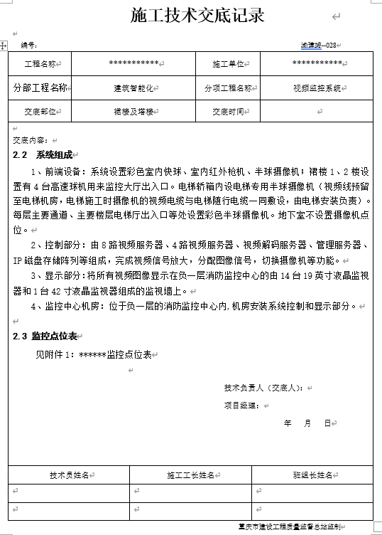 视频监控施工技术交底记录