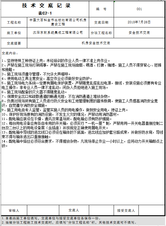 机房技术交底模板