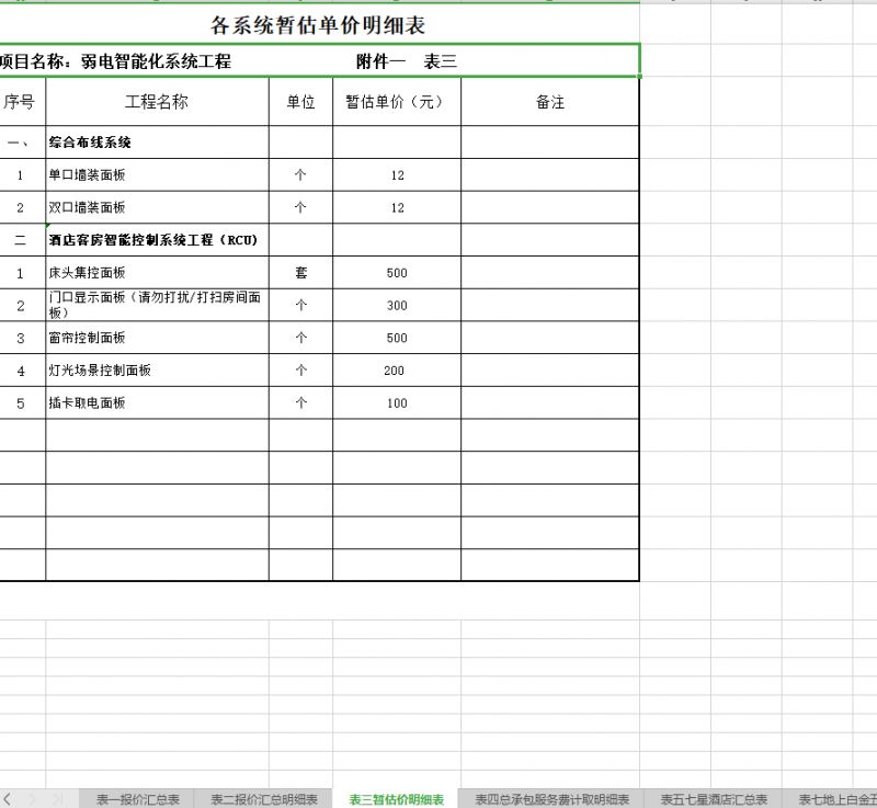 由于报价比较大,部分酒店工程报价截图: