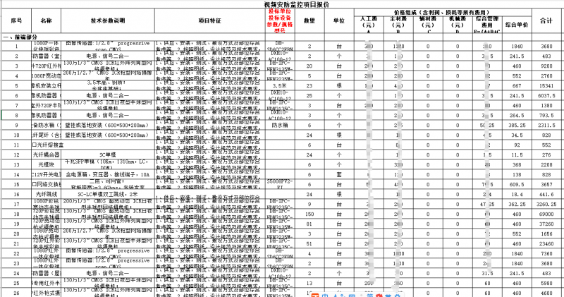 内容比较多,就不一 一截图,这份监控系统施工及主材报价非常全面。