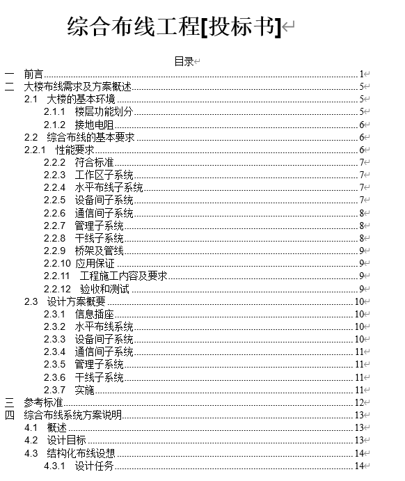 综合布线工程投标书,非常全面详细,下面是相关目录。