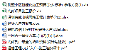 光纤入户方案及报价专题 8份,其中包括 5份方案及文档,3份相关报价内容。