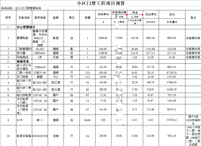 小区门禁系统报价施工-主材