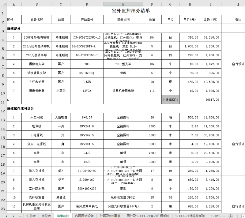 公园景区智能化系统报价预算,系统比较多,部分截图。