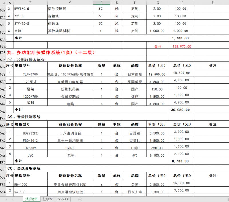 最全的弱电各系统工程采购预算清单,汇集弱电十几个系统的清单预算,下面是部分截图。