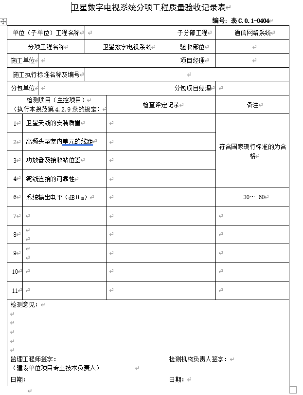 卫星数字电视系统分项工程质量验收记录表