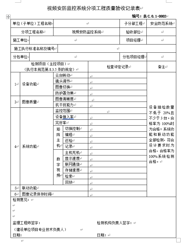 0802视频安防监控系统分项工程质量验收记录表