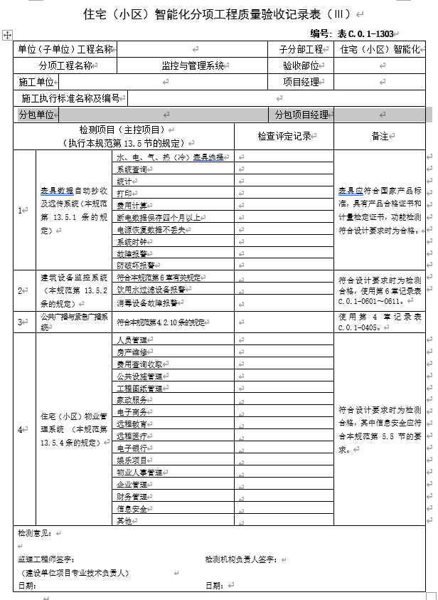 1303住宅(小区)智能化分项工程质量验收记录表(Ⅲ)