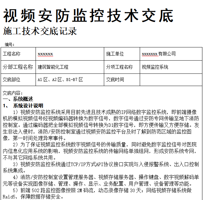 安防监控系统技术交底文件,共10页。