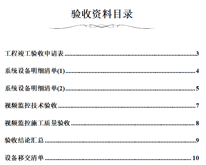 项目视频监控系统工程的验收竣工资料: