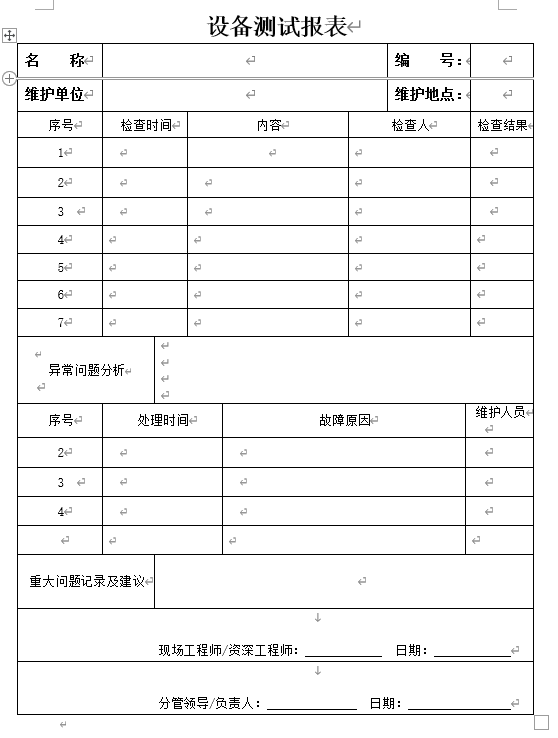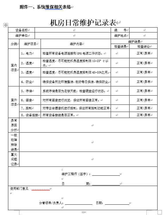 附件一《维保服务相关表格》
