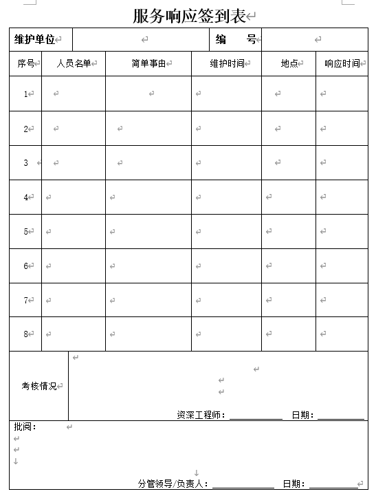 5) 服务后由乙方详细填写维修单。维修单应包括项目名称、故障时间、故障现象 、解决时间、维修人、用户意见、用户签字等项。