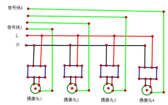 我现在固定好了4个摄像头,另外买了4个包括电源的防水盒子,也安装在摄像头边上了了现在问题就是这4个电源盒子的另外一头的线我要接在哪里呢?就8根孤零零的线,又没有现成的插头放硬...