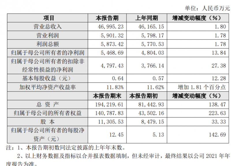 2月24,广州市品高软件股份有限公司发布《2021 年度业绩快报公告》,报告期内,公司实现营业总收入 46,995.23 万元,同比增长 1.80%;实现利润总额 5,873.42 万元,同比增长 1.78%;实现归属于母公司所有者的净利润 5,468.69 万元,同比增长 13.84%;实现归属于母公司所有者的扣除非经常性损益的净利润 4,797.43 万元,同比增长 27.38%。