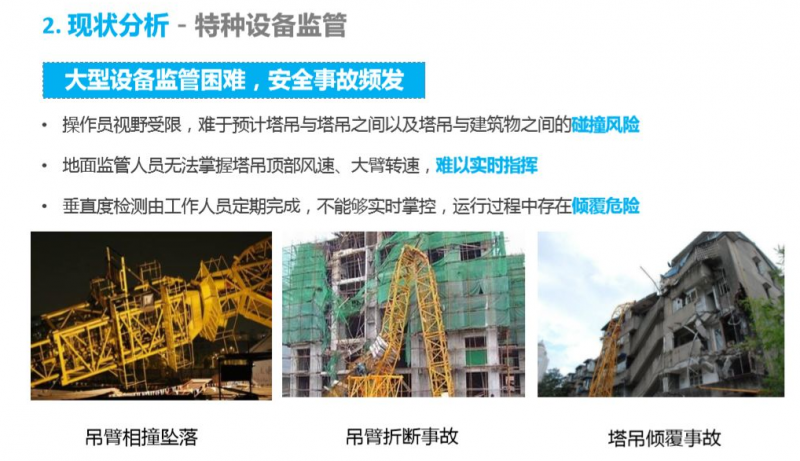15 | 12 | 特种设备(塔吊、升降机、卸料平台等)监控 | 通过传感器实时采集塔吊、升降机、卸料平台等的运行数据,当前发生违章操作时监控设备在发生预警、报警的同时,自动终止设备危险动作,有效避免和减少安全事故的发生;同时该数据通过网络上传到云端服务器,平台进行远程的监控与管理 | √ | √ | √ | √ | ||||||