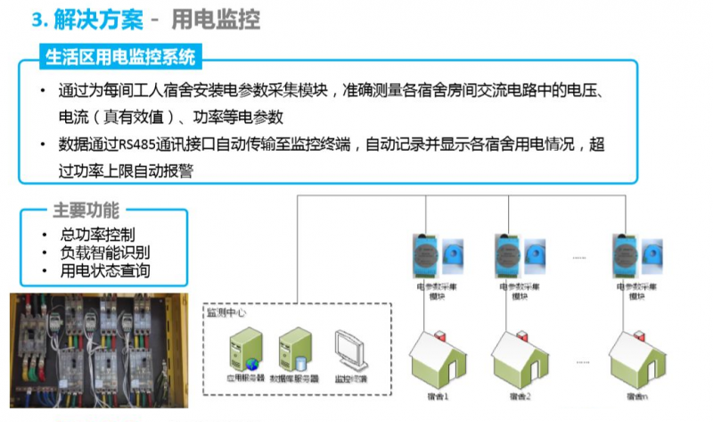 21 | 18 | 施工智能用电管理 | 项目管理人员按施工周期可设置照明周期,针对临时用电进行远程开关操作,并统计项目工地的整个用电情况 | √ | √ | √ | √ | ||||||