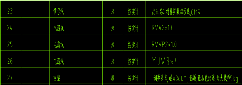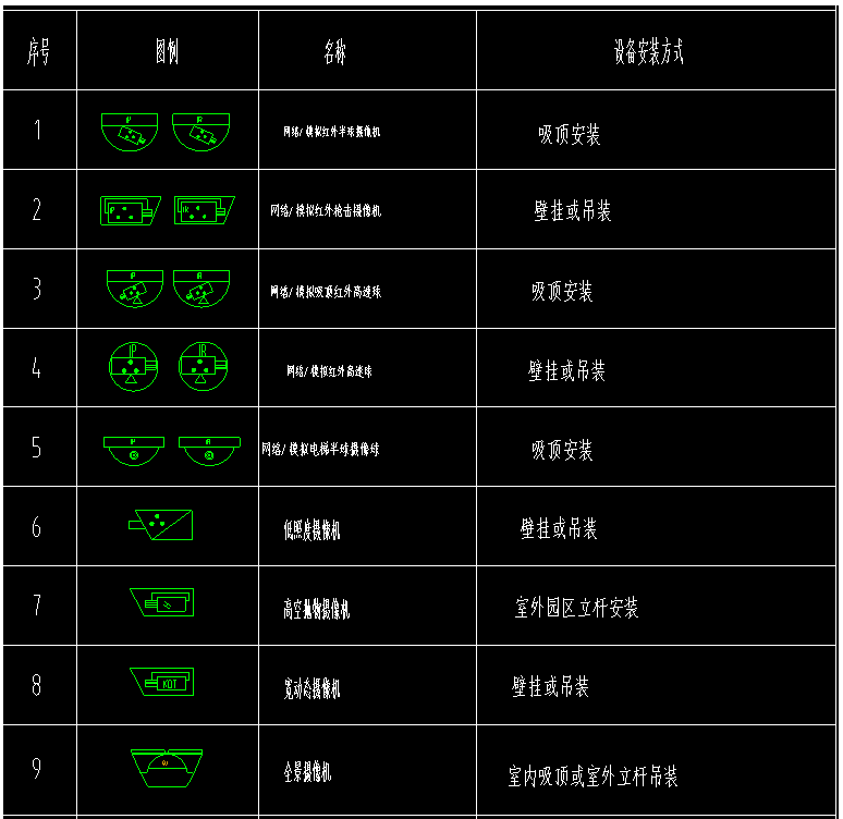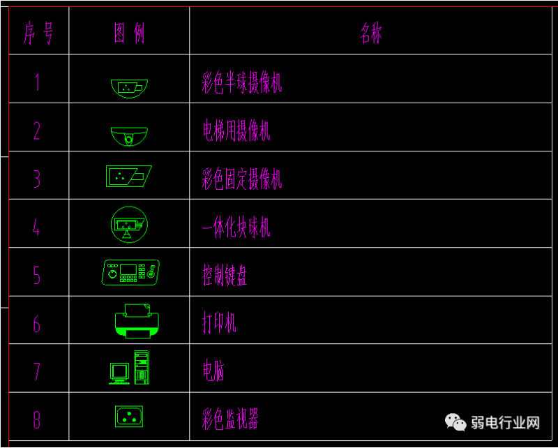 一、监控材料表与图例