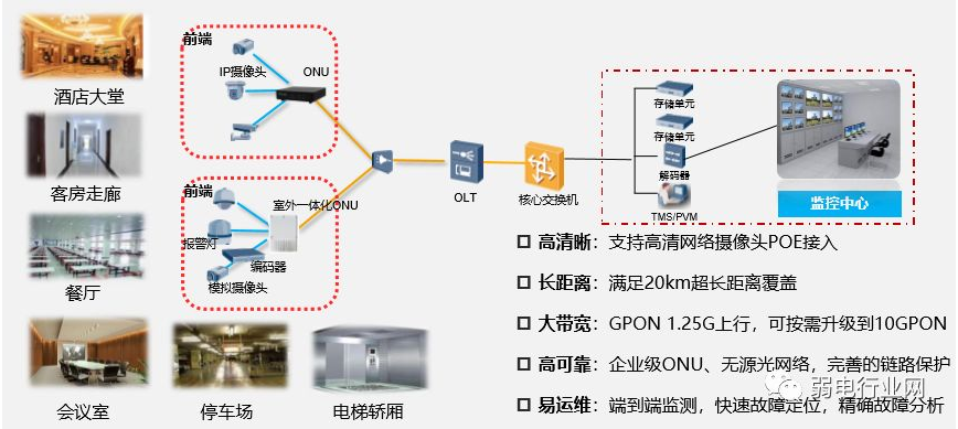 一网多能: 一张网络满足所有接入场景 ,客房,安防,无线,门禁全场景覆盖。