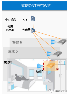 一房一纤:一个房间只布放一根光纤, 一个房间只配备一个终端。
