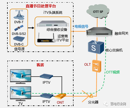 采用了GPON+LAN+WLAN,GPON 解决酒店分散别墅的远端接入,别墅内LAN和WLAN 提供一体化网络覆盖。