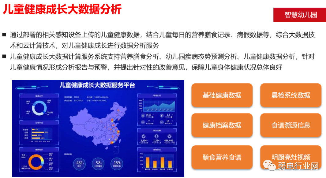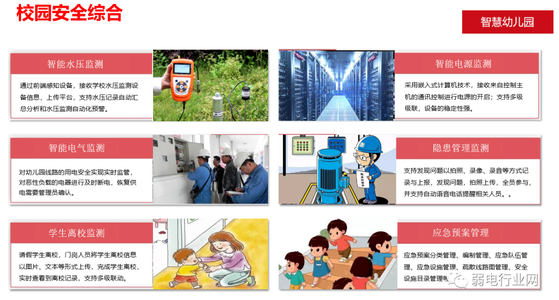 关于幼儿智能化是近几年热门的项目之一,因为多方面因素,智慧幼儿园的建设非常重要,在我们弱电VIP技术群中也有不少朋友已经在做相关的项目了,幼儿园虽然不比大学与中学,但是涉及的弱电系统其实并不少,我们平时熟知的幼儿园系统主要有监控,但是现代化智能化系统园建设并不单单只有监控,有更多的智能化、多媒体教学方面的软硬件,