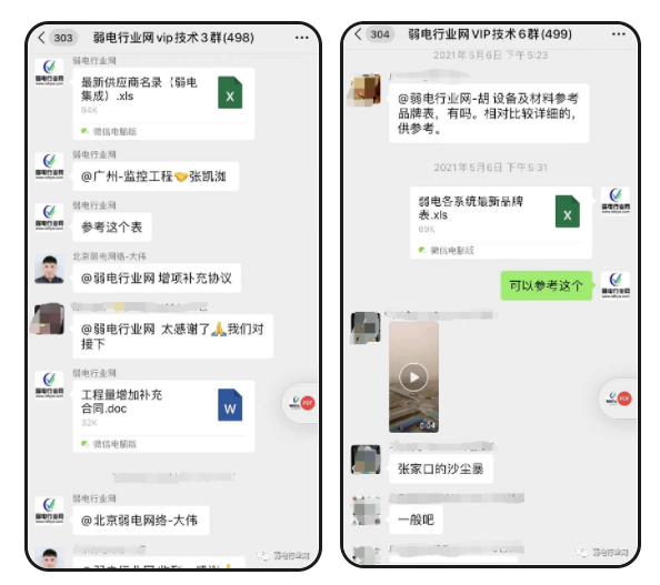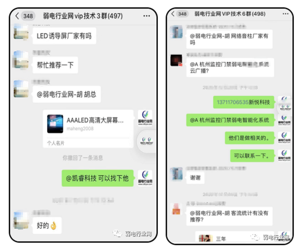 厂家用户会同时加入我们的人员微信,当社群中有工程商、集成商需要某些业务时,我们会根据名片进行定向推荐到社群中,给有需要朋友。