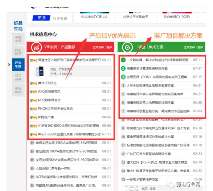 不定期会组建厂家专题,将同类的厂家在公众号上面进行推荐,推荐给30万弱电用户,另外也会在官网上公布优秀工程商与厂家,方便项目对接,将你公司的名片推荐给30万弱电行业人群。