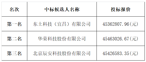 6月6日,宜都化工园智慧平台、封闭管理建设项目中标候选人公示,中标候选人第一名:东土科技(宜昌)有限公司 ,投标报价:4536.280796万元。