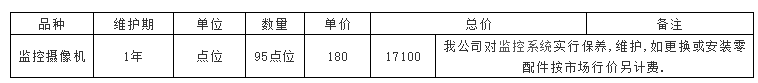 也就是每台监控摄像机单月15元/月,当然对于很多项目摄像机数量比较少,那么它的维护费可以适当提到,例如摄像机低于10台者,可以按每台30元每月计算。