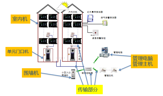 提供对小区安全防范,提供先进的物业管理手段