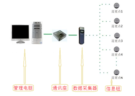 信息钮(巡更巡检点)、数据采集器(巡更棒)、通讯座、电脑、巡更专用软件。